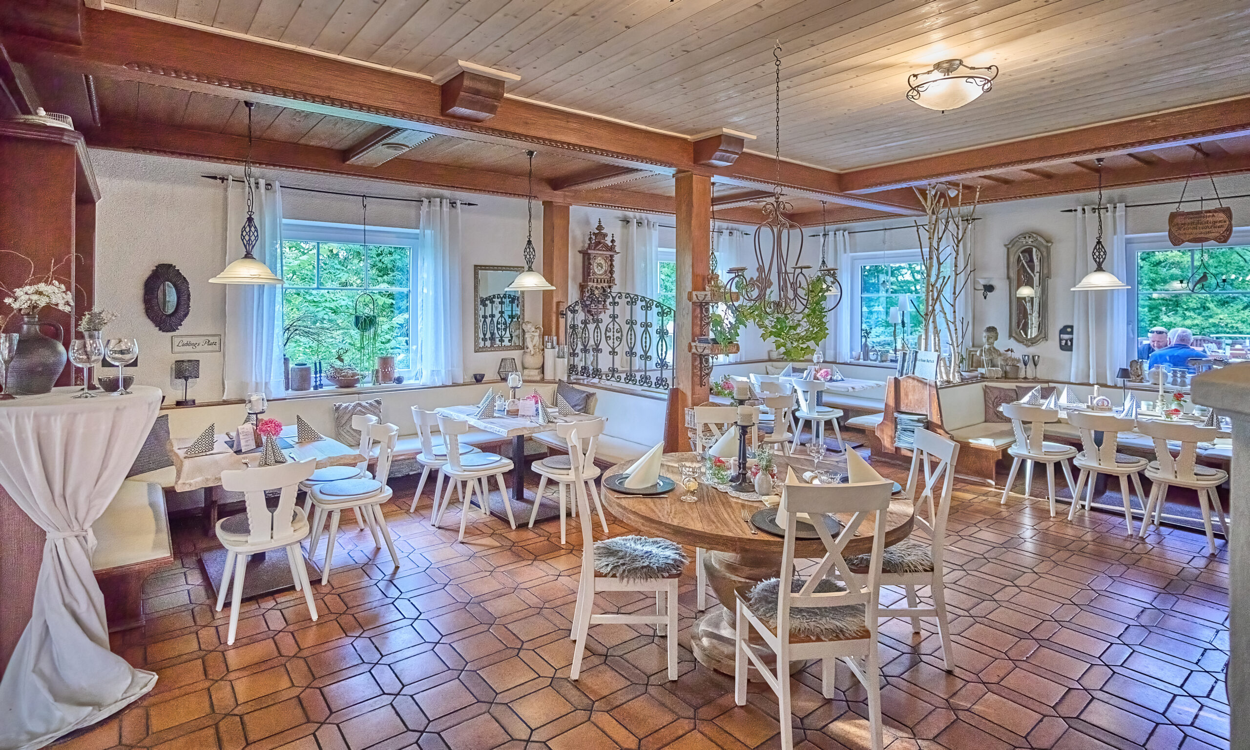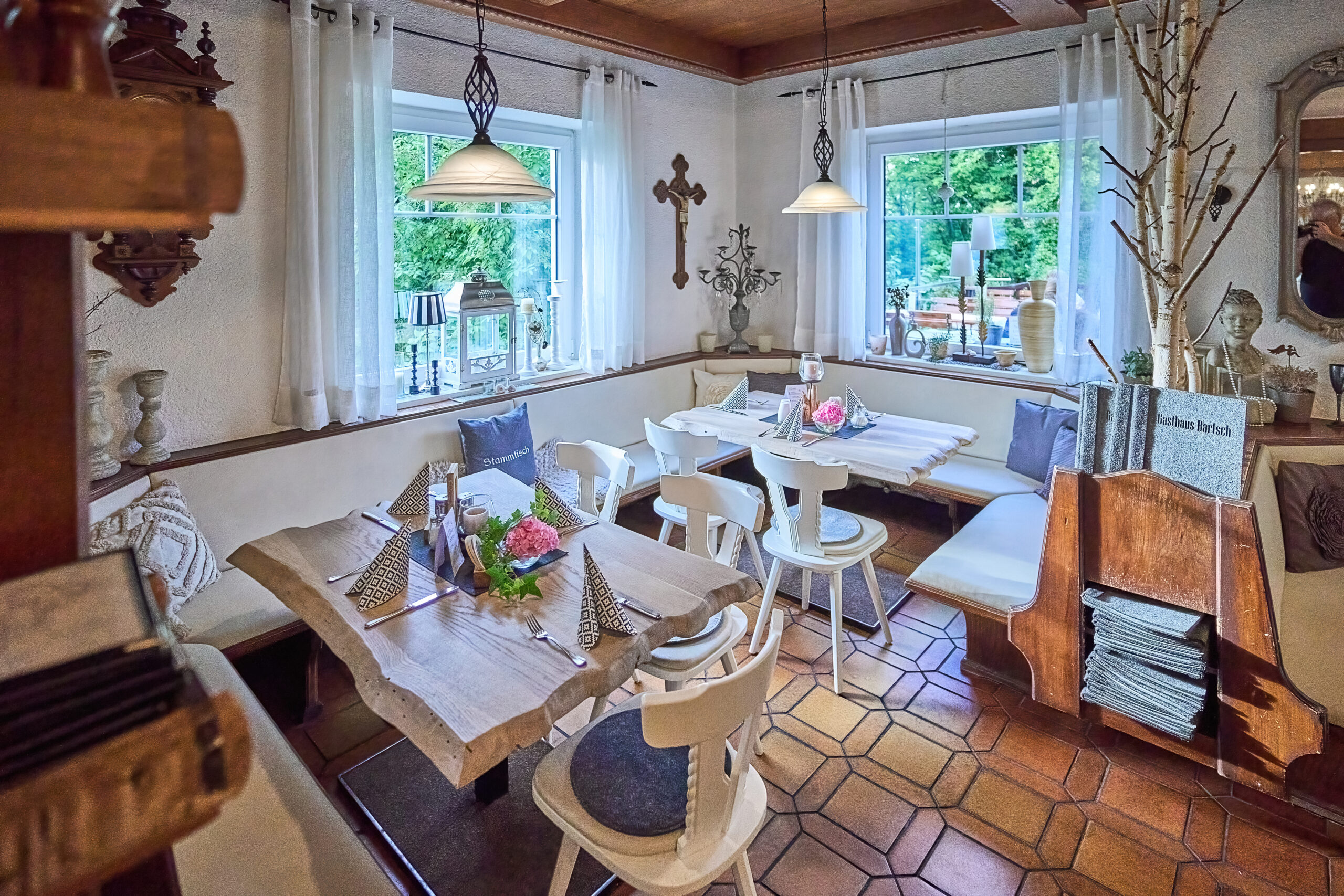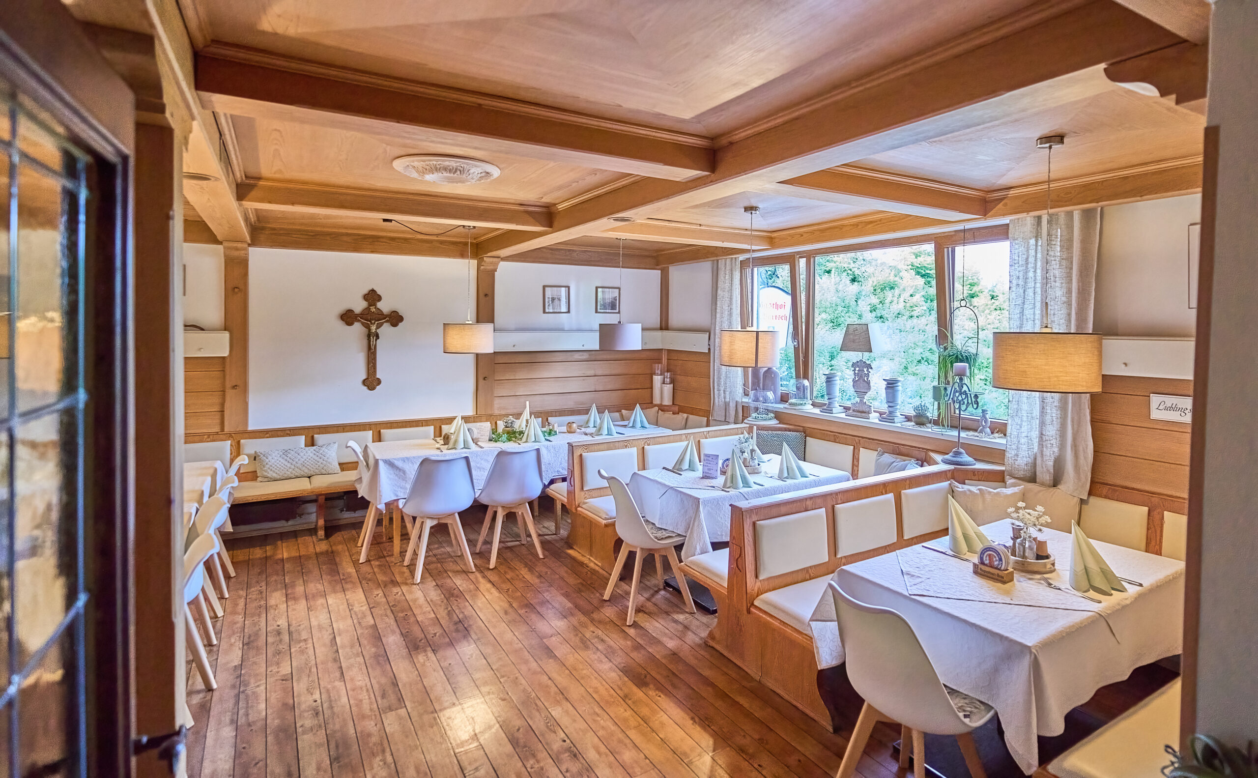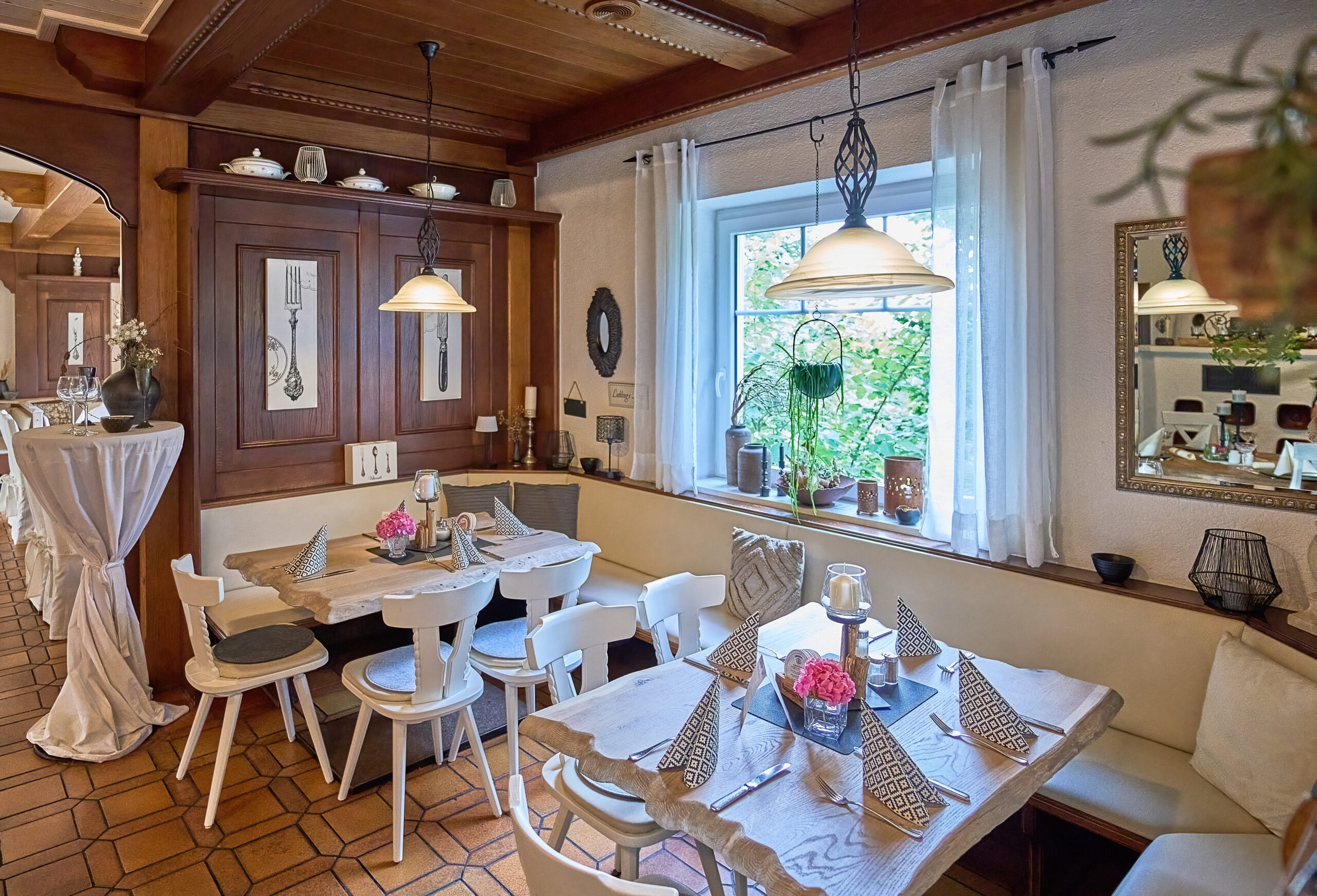 festlicher Raum. Eignet sich für größere Feiern, durch eine Schiebetür auf Wunsch abtrennbar von der Gaststube.