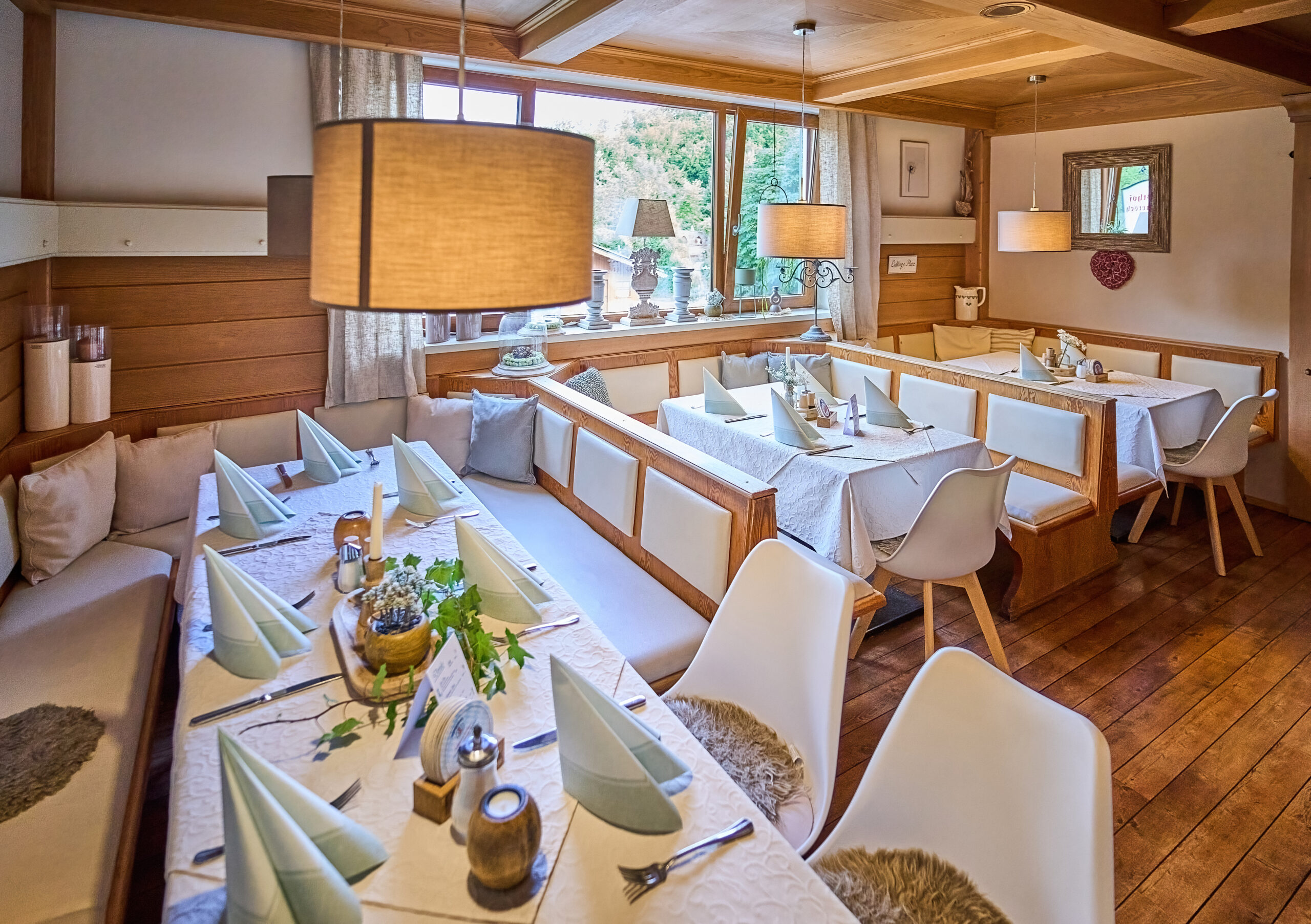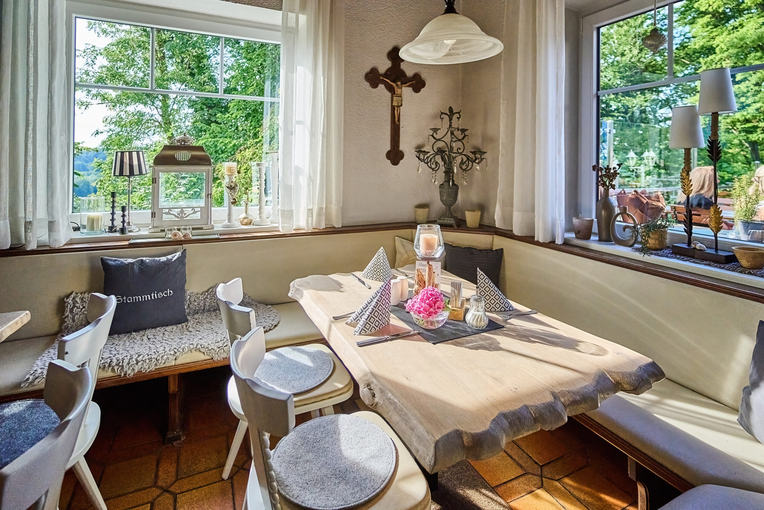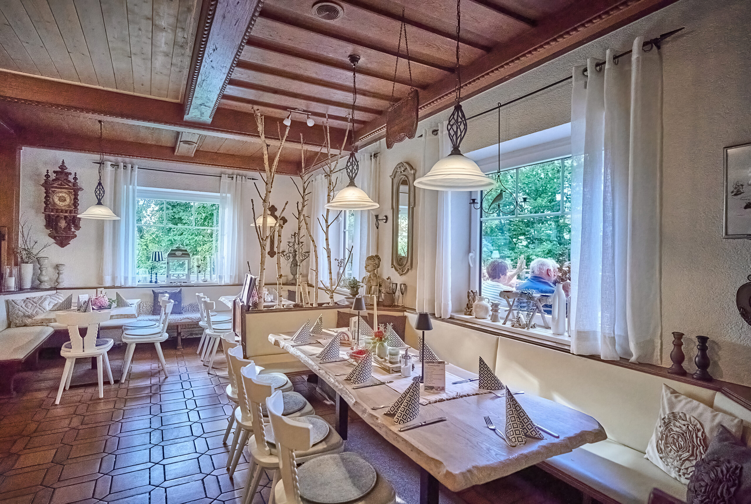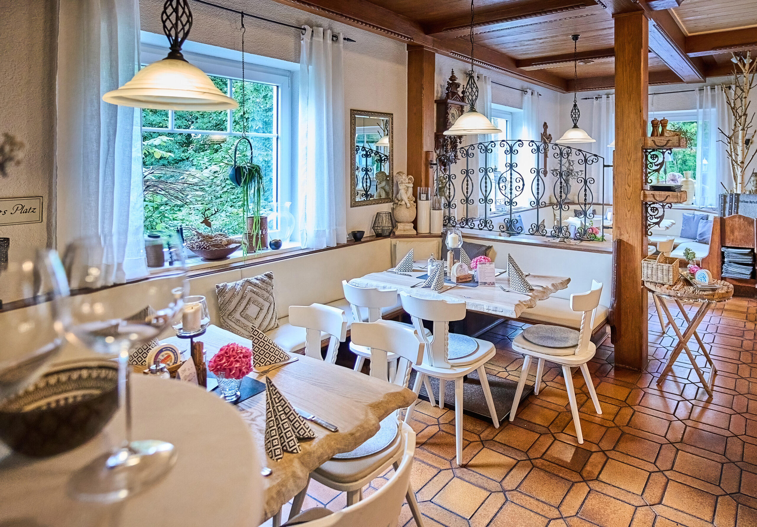 festlicher Raum. Eignet sich für größere Feiern, durch eine Schiebetür auf Wunsch abtrennbar von der Gaststube.