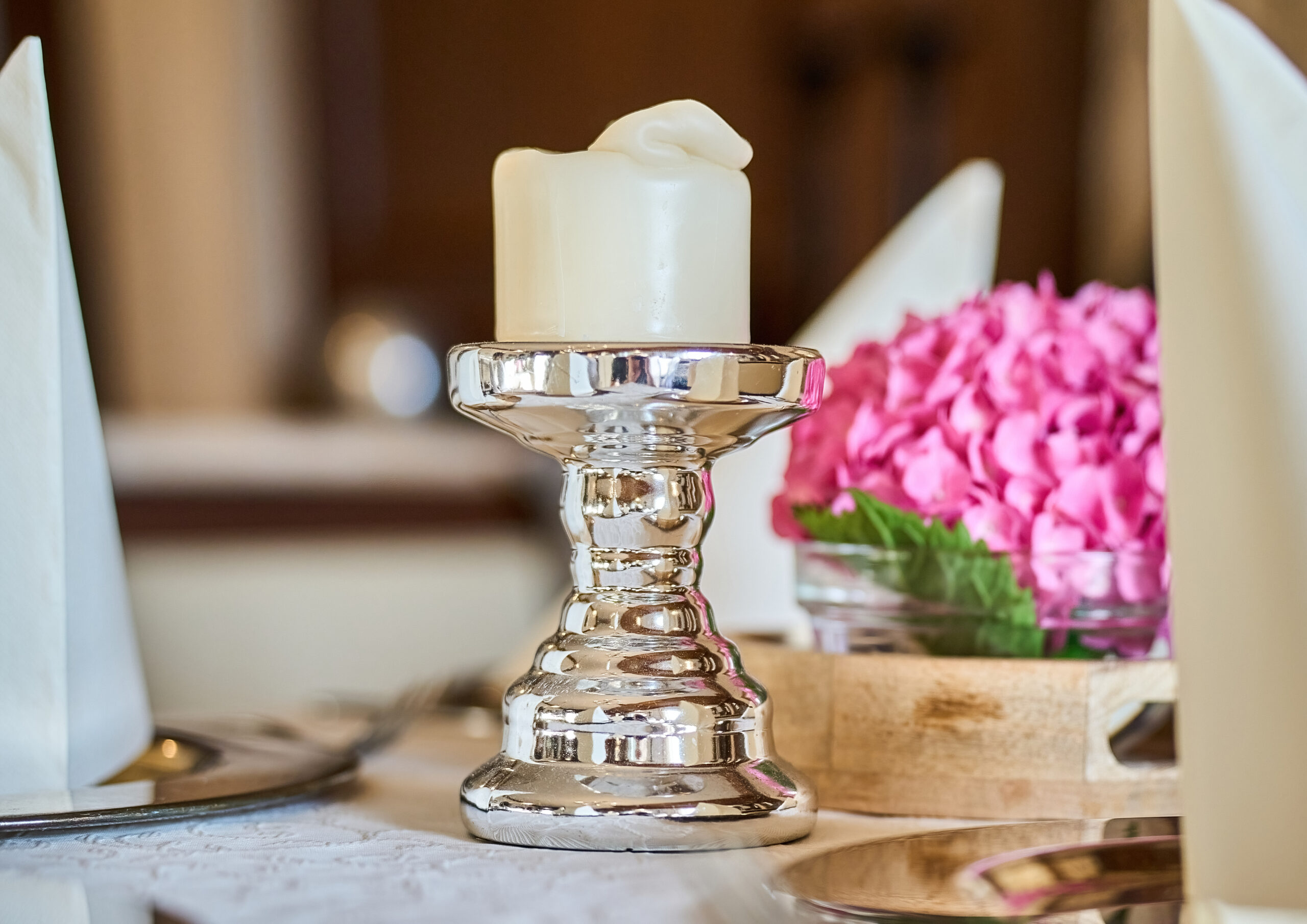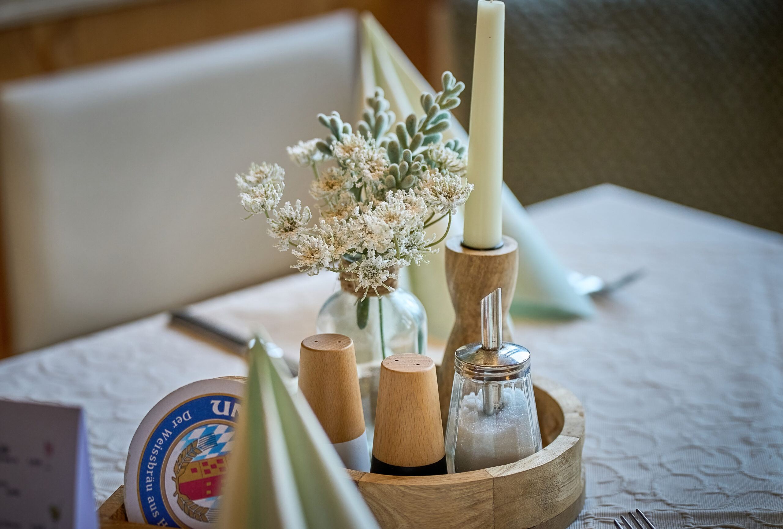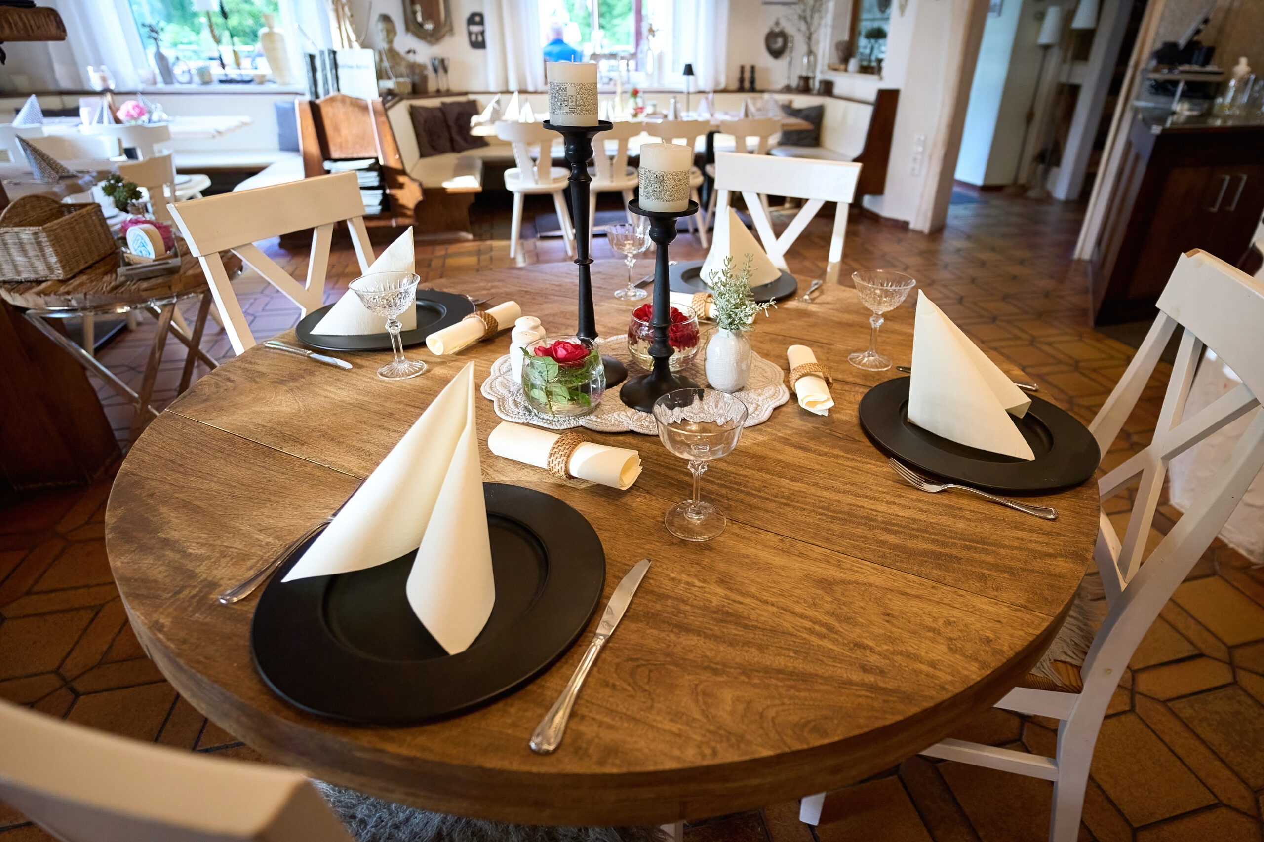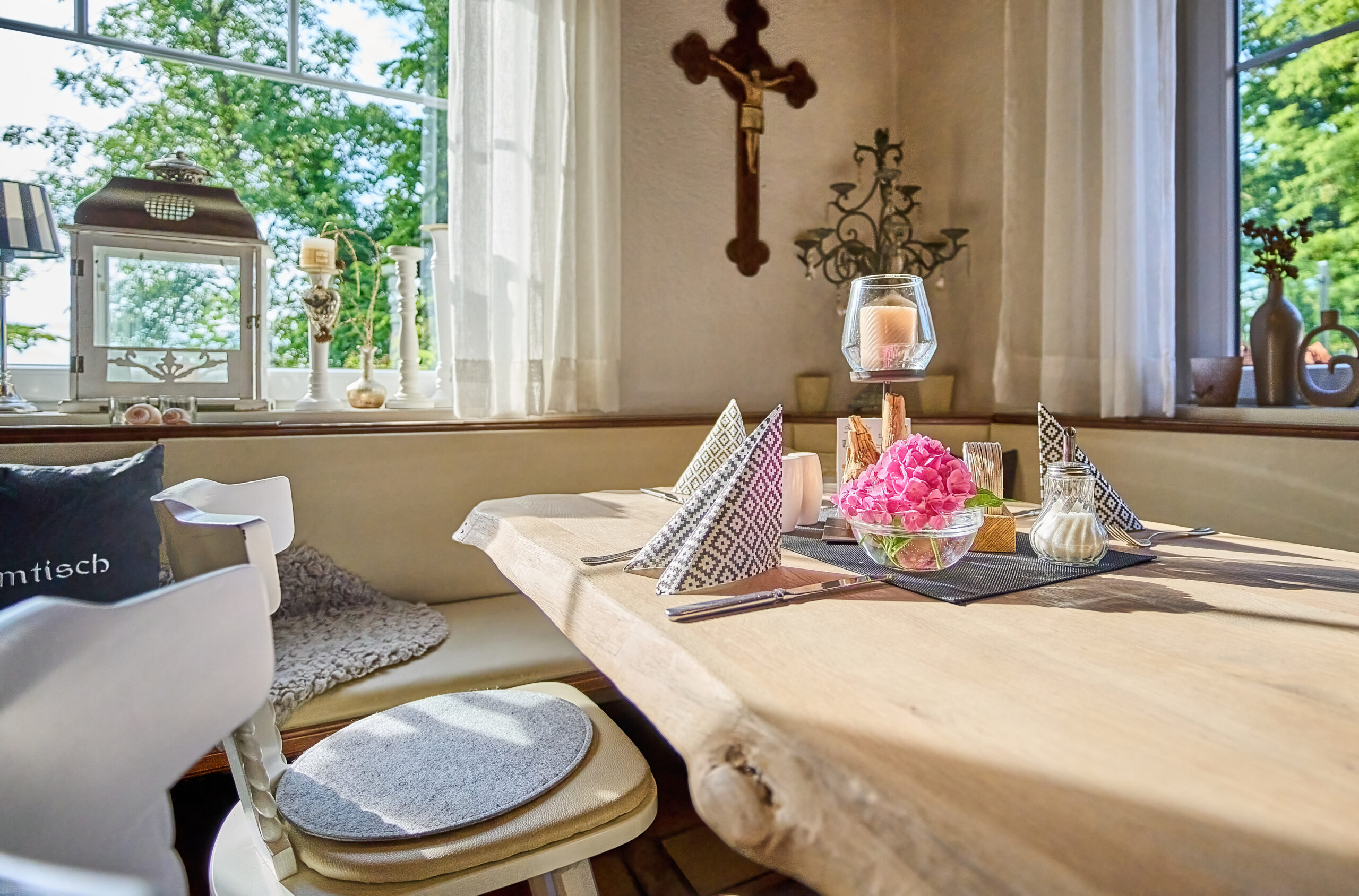 festlicher Raum. Eignet sich für größere Feiern, durch eine Schiebetür auf Wunsch abtrennbar von der Gaststube.