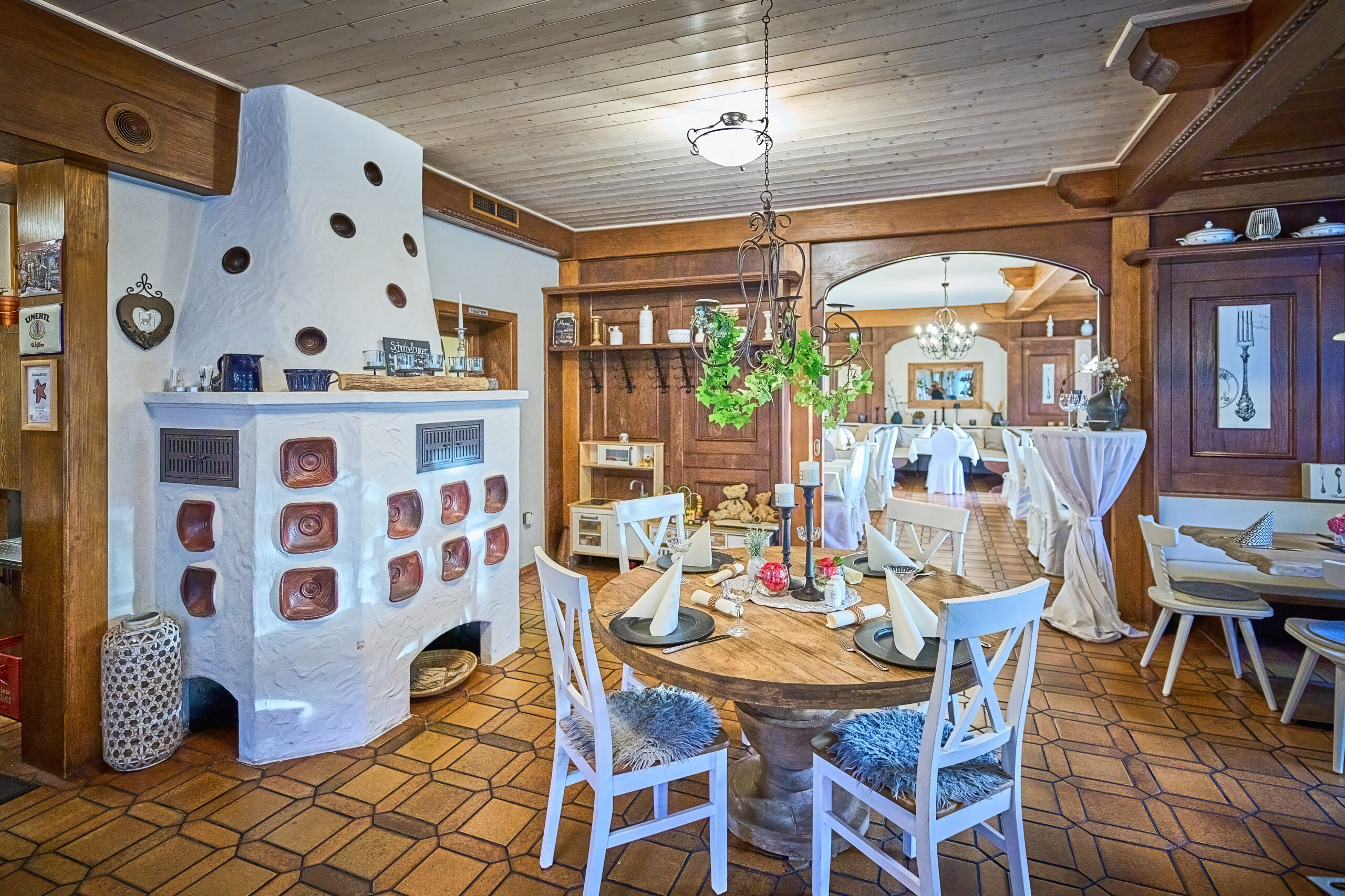 Hier spielt sich der gesellige Wirtshausalltag ab – mit einem gemütlichen Kachelofen.